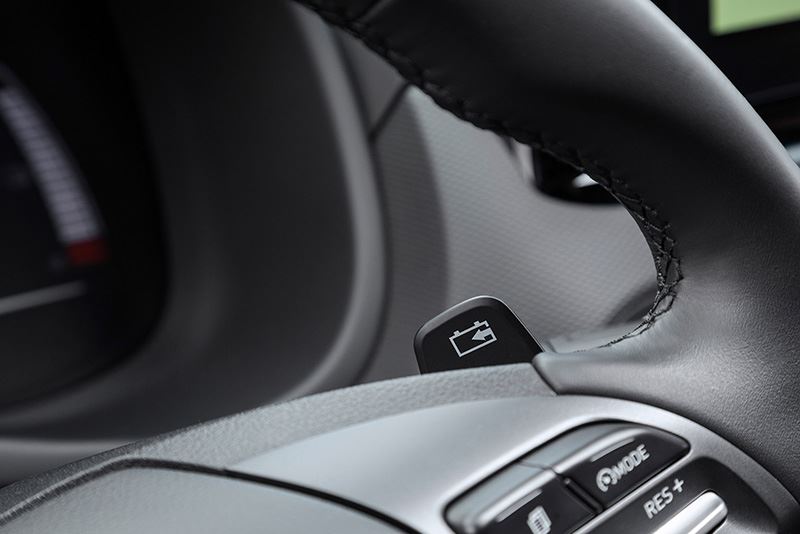 Uiteraard wordt hoofdzakelijk in de eco-modus gereden. De airco blijft uit en op de snelweg passeert de wijzer nimmer de 100 km/u. Ook goed om te weten: de redacteur maakt dankbaar gebruik van de peddels achter het stuur voor de bediening van regeneratief remmen. Daarmee kun je zelf bepalen hoeveel remenergie je op de weg wilt terugwinnen. De accu slaat de vrijgekomen energie op en die komt later van pas bij de aandrijving. De elektromotor werkt zo als een soort dynamo.