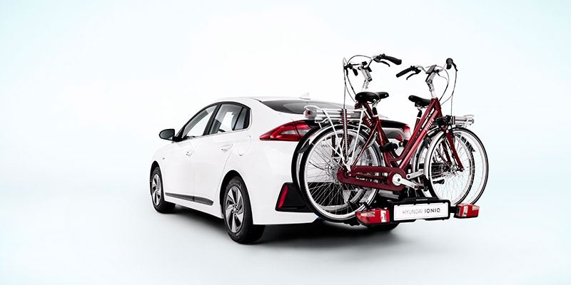 Wie nu een Hyundai IONIQ Hybrid koopt (vanaf prijs € 24.450,-) profiteert extra. Behalve dat de IONIQ Hybrid wordt geleverd met een e-bike van Stella ter waarde van duizend euro, geeft Hyundai ook nog eens extra voordeel op de speciaal voor de Hyundai IONIQ ontwikkelde fietsendrager.