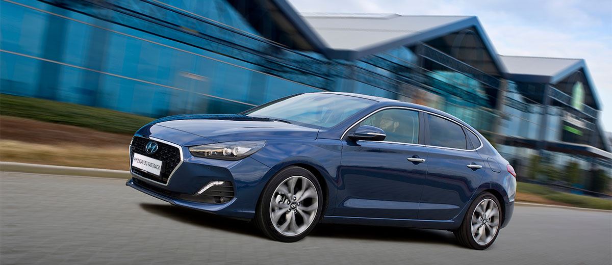 De fonkelnieuwe Hyundai i30 Fastback staat sinds kort in de showroom. Hij heeft een opvallend design met een bijzonder lijnenspel. Dankzij zijn elegante daklijn, aflopende achterzijde, exclusieve lichtmetalen 17-inch velgen en brede wielkasten is de vijfdeurs-coupé een echte blikvanger.
