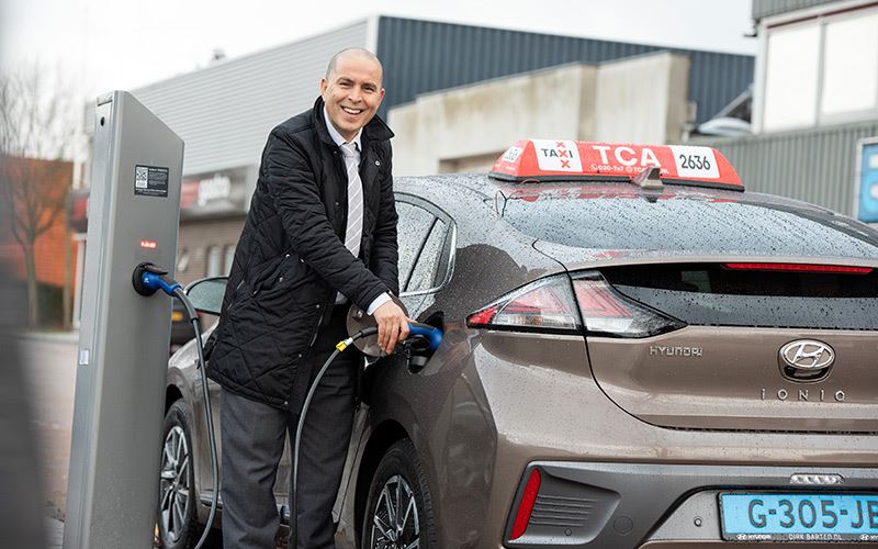 Steeds meer particulieren, leaserijders en bedrijven kiezen voor de Hyundai IONIQ Electric. De “taxi zonder uitstoot” verovert ook de taxibranche. Taxichauffeur Abdeslam Emoden van Amlaouk Taxi is een heel tevreden Hyundai IONIQ Electric-rijder. 'Het is gewoon een erg fijne auto.'