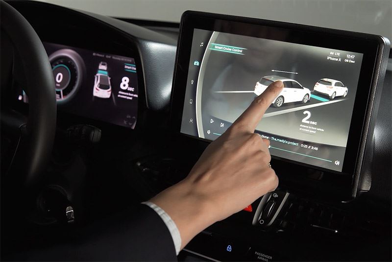 Stuurwielen en interieurs hebben steeds meer bedieningstoetsen gekregen. Sinds 2015 is het Hyundai’s missie om het aantal bedieningstoetsen zoveel mogelijk te reduceren en een strak en helder overzicht te creëren. Daarom werden bijvoorbeeld de tuimelschakelaars op het stuurwiel vervangen door twee bedieningspanelen met touch-functie.